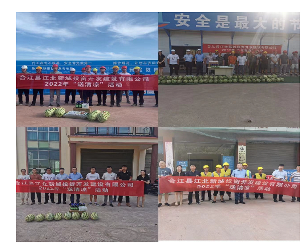 為了切實(shí)保障堅(jiān)守在一線崗位的員工所需, 防止炎熱夏 日高溫中暑, 確保一線工作人員擁有良好的工作狀態(tài), 8 月 8 日 , 江北公司組織開展走一線 “ 送 清 涼 ” 活動 , 為奮戰(zhàn)在生產(chǎn)一線的員工發(fā)放防暑降溫用品。 此次送清涼活動, 分別走訪了學(xué)府家園(一期) 、合江縣江北文化綜合體建設(shè)項(xiàng)目 (中學(xué)及配套道路) 、合江縣長江岸線江北段水環(huán)境綜合整 治項(xiàng)目 (一期) 三標(biāo)段等一線崗位, 將防暑降溫物品親自送到各個崗位的員工手上, 讓他們切實(shí)感受到江北公司的 “清 涼和關(guān)愛”。 在發(fā)放慰問品的同時, 也再三叮囑一線人員要 注意防暑降溫, 合理避開高溫作業(yè)時間, 做好防暑應(yīng)急措施。