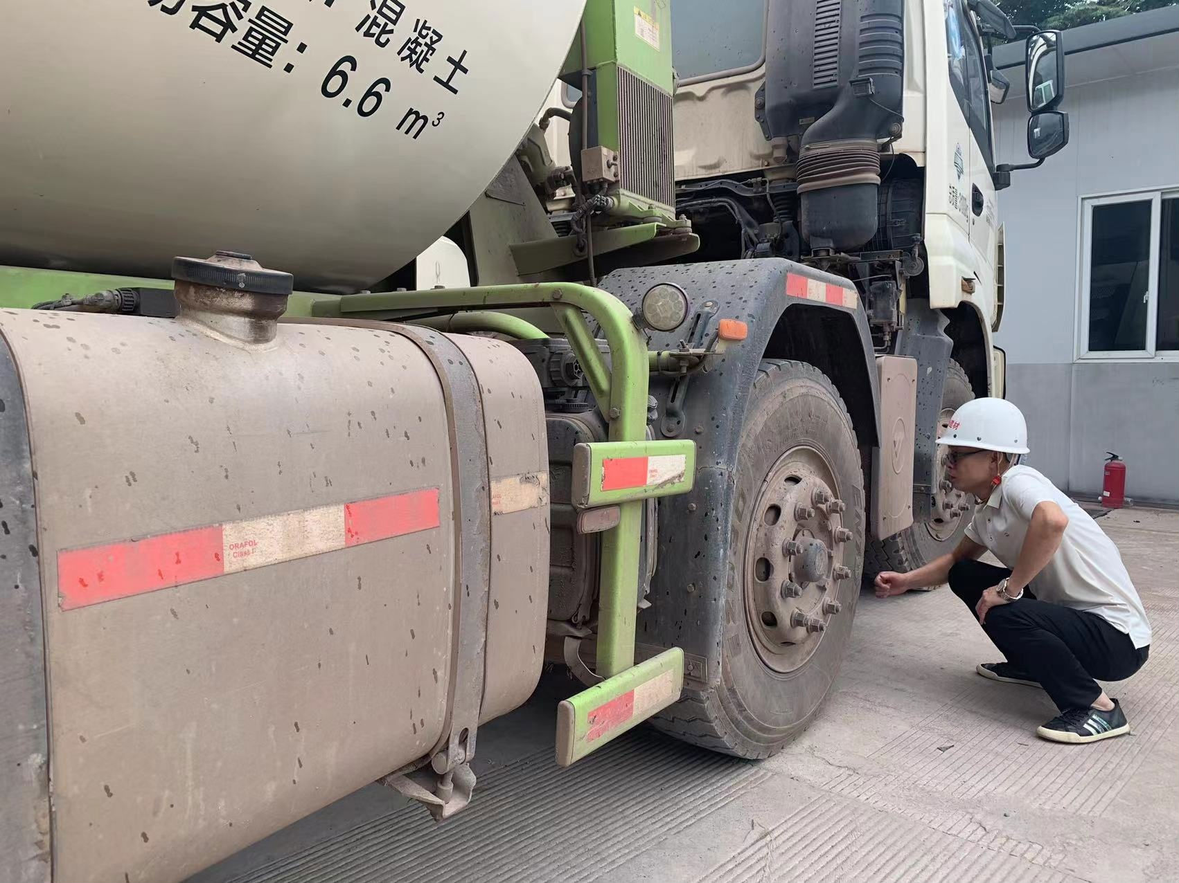 在國瑞商貿(mào)公司商砼站的停車場(chǎng)內(nèi), 總有一個(gè)身材清瘦、 架著一副眼鏡的人對(duì)即將開展運(yùn)輸任務(wù)的罐車進(jìn)行安全檢查, 并對(duì)司機(jī)開展駕駛前的安全教育, 他從擔(dān)任公司車隊(duì)長兼生產(chǎn)調(diào)度以來, 始終堅(jiān)守著車輛出發(fā)前的檢查工作, 他就是國瑞黨支部委員王平。
