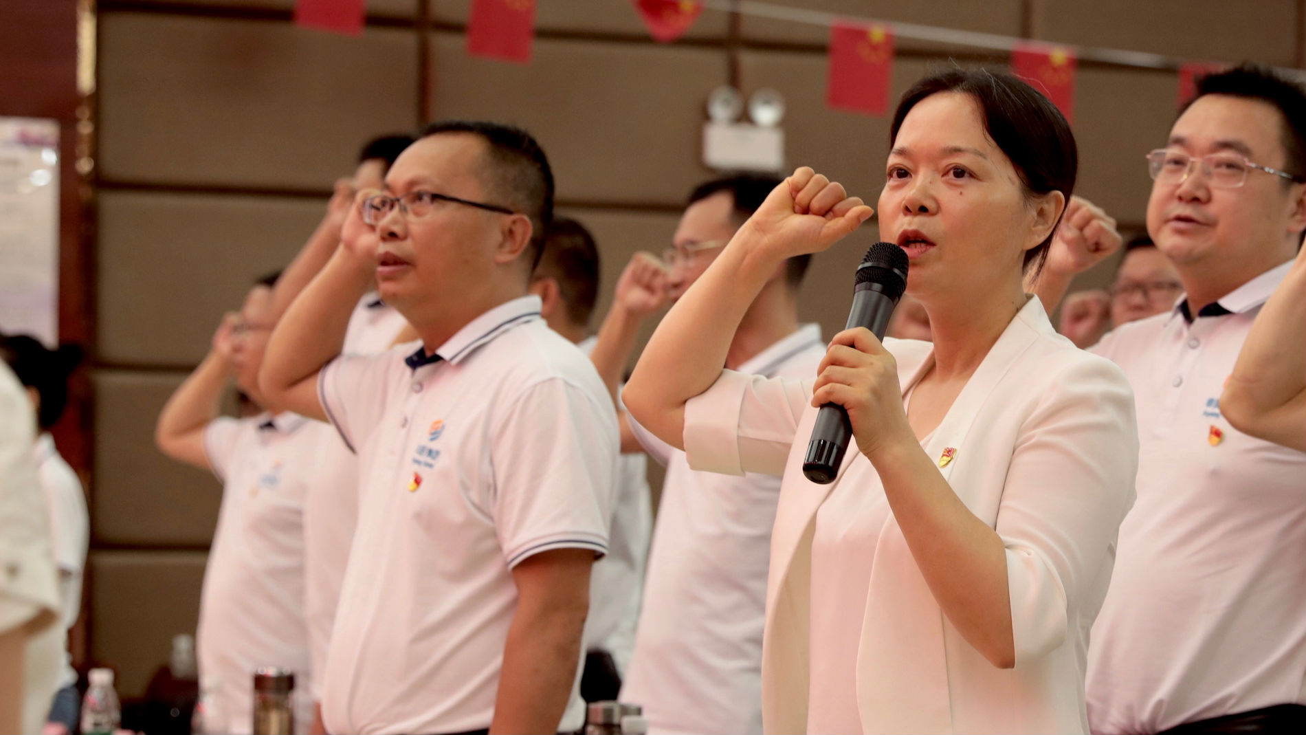全體黨員面向黨旗,游啟君同志帶領(lǐng)新發(fā)展黨員進(jìn)行了入黨宣誓、老黨員重溫了入黨誓詞,感悟初心使命,堅(jiān)定理想信念,永葆對黨忠誠。