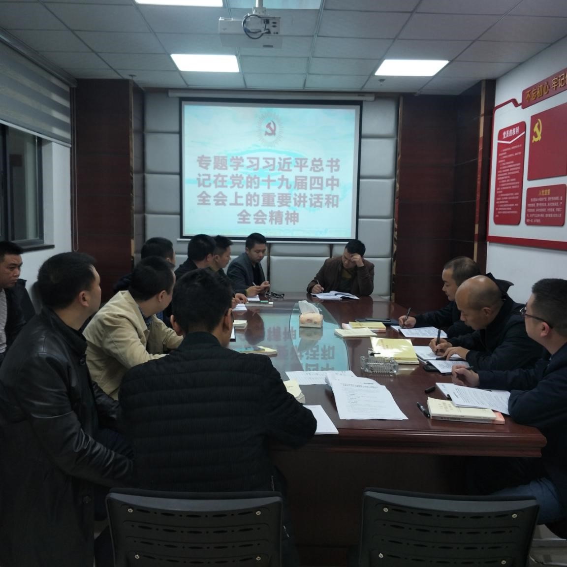2019年11月8日,中共合江縣城市開發(fā)投資(集團)有限公司支部組織黨員、入黨積極分子持續(xù)開展主題教育學習,專題學習了習近平總書記在黨的十九屆四中全會上的重要講話和全會精神。